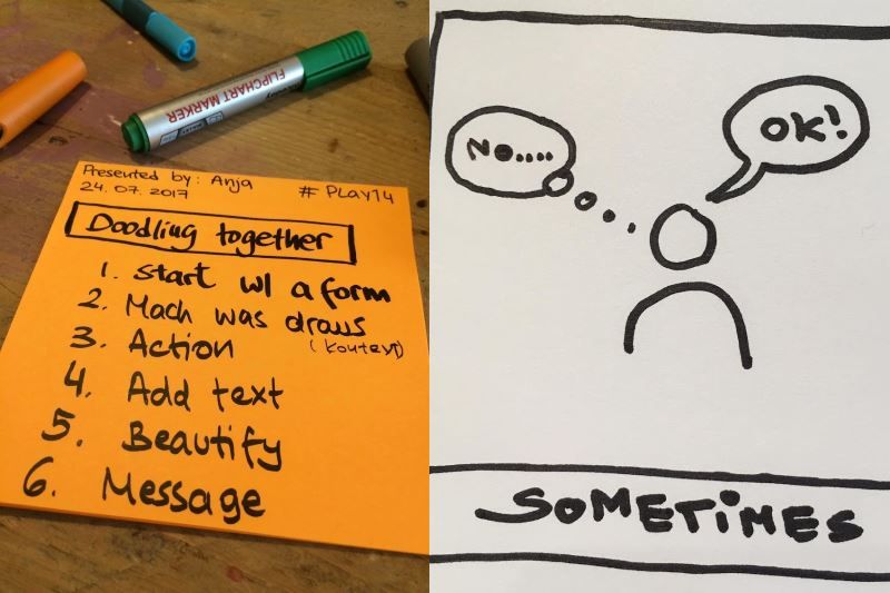 Reviewing/celebrating the creations and bringing home the key things it delivers: collaboration, creativity, building creative confidence, letting go of perfectionism, establish trust in the group, establish a jazz / jam-session mentality, including everyone